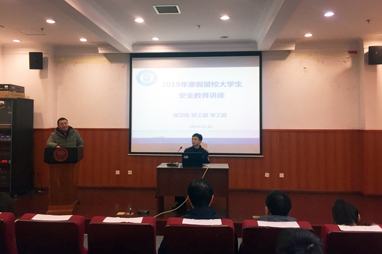 “守护安全是我们的使命,你们的平安是我们最大的牵挂”,学校保安队长余国春对记者讲到,“学校这么大,为了守护学校的平安,我们安排了全天候值班,每两小时进行一次巡逻,学校放寒假,安全可不能放假!”。为了让广大上理师生过一个平安年、幸福年,进一步提高广大师生假期安全防范意识和能力,学校相关部门通过宣讲教育,主题班会,校园网、学校官微、楼宇电视、平安上理等开展一系列安全宣传教育活动。保卫处与社区民警开展警校合作,为留校学生开展安全教育讲座,设计制作安全宣传手册,并发到每一个留校学生手中。