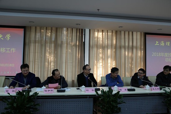 2019年1月18日,学校2018年度技术转移工作总结会在格致堂108召开。会议邀请到上海教委科发中心主任陆震、上海张江高校协同创新研究院院长倪争技出席,学校副校长刘平、技术转移中心主任张大伟、副主任管骁、上海理工技术转移有限公司总经理童正明及各技术转移工作站站长近30人参加会议。会议由张大伟主持。