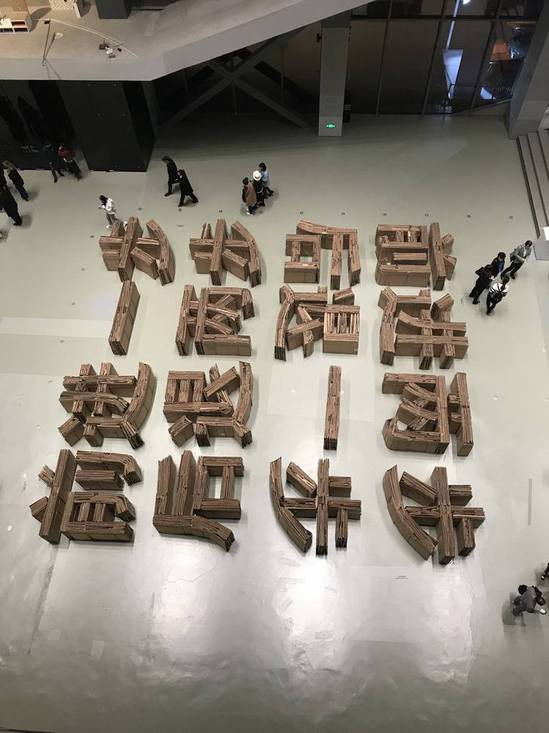 参观过程中,一楼大厅中阿根廷艺术家恩里克·耶泽克《围地》引起了师生党员的强烈兴趣。作品由4000多块废纸板组成,在一楼大厅近距离观看时,很难看出作品想表达的含义,然而当你走上二楼从高处俯视时,“前进两步,后退一步;前进一步,后退两步”的文字矩阵却跃然眼前。强烈的视觉冲击,引人反思启蒙叙事对于“发展进步”的过分迷恋,直面历史发展本身的矛盾性与辩证性。一楼大厅中另一件作品,来自费尔南多·桑切斯·卡斯蒂略《摆荡》,则用摇摆不定的秋千,传达出当代无处不在的矛盾与人们无处安放的情感。西班牙艺术家克里斯蒂娜·卢卡斯《顺时针》,是一个由360个时钟构建的机械装置空间,艺术家传达出对于工业社会与信息时代中自然时间被人为切割的忧虑之情。