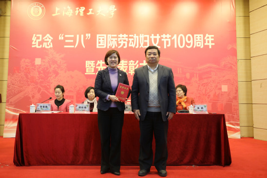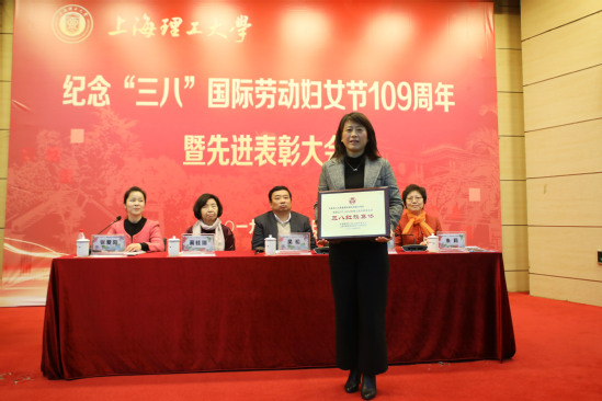 会议现场向上海市三八红旗手刘芹、上海市教育系统三八红旗手张文碧、上海市教育系统三八红旗集体环境与建筑学院建筑环境与能源工程系、校三八红旗手、校三八红旗集体和校优秀妇女工作者颁发了奖牌和证书。随后,刘芹、吕静、朱晓雨、倪伟分别代表获奖者、获奖集体作了交流发言。