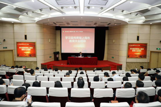 3月22日,上海市教育大会举行,中共中央政治局委员、上海市委书记李强,教育部党组书记、部长陈宝生出席会议并讲话。为深入学习贯彻上海市教育大会精神,3月27日下午,学校在综合楼报告厅举行校、院(机关)两级中心组(扩大)学习会,校党委书记吴松传达大会精神,两级中心组成员、全体正教授参加会议。