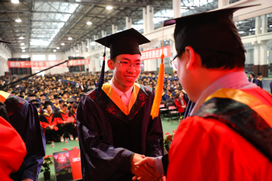 在热烈的掌声中,学位授予仪式开始。意气风发的毕业生依次走上主席台,从主席台领导、院士手中庄严接过学位证书,接受拨穗,随着流苏自右至左轻轻拨过脸庞,一次握手、一个微笑、一声祝福,收获的喜悦在这一刻悄然定格。这是他们人生中值得永远铭记的时刻,同时也为难忘的研究生求学经历划上圆满的句号,从此开启了人生新的篇章。