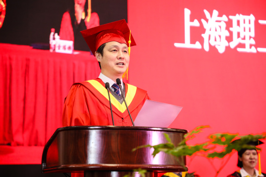 典礼开始前,现场播放了上理研究生原创毕业献礼歌曲《遇见,再见》,用视频总结他们这三年的“研途”生活,并祝愿毕业后的他们实现心之所梦。随后,毕业典礼在雄壮的国歌声中拉开帷幕。校党委副书记、副校长盛春宣读了关于授予研究生学位的决定。