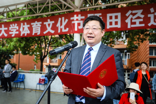 校长丁晓东致开幕词。他指出,当前正是永利官网建设高水平大学的关键时期,学校将不忘初心、牢记使命,秉承服务学生成长成才的宗旨,着力加强校园文化建设,特别要进一步加快体育课程改革,推动体育社团和阳光体育活动蓬勃开展,不断培养出德智体美劳全面发展的高素质人才,让学生朝着更快、更高、更强的目标冲刺,心怀伟大的梦想奔向更广阔的舞台。希望通过体育文化节让广大师生充分发挥自己的运动才华,尽情释放对体育的热爱,享受竞争、拼搏、奋斗、成功带来的喜悦,并不断突破自我,追求卓越,以新的更好的成绩向新中国成立70周年献礼。