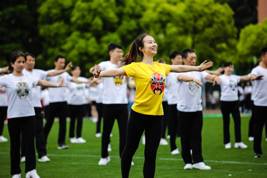 教工韵律广播操、学生军体操展演赢得阵阵掌声