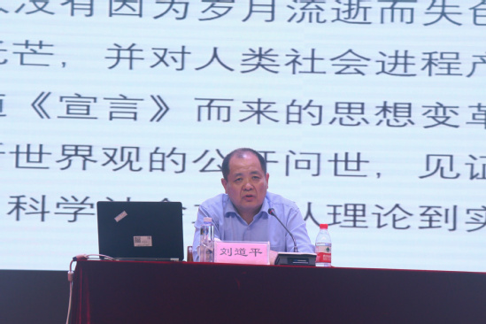 刘道平从纪念马克思诞辰200周年大会上习近平总书记的讲话讲起,介绍了马克思主义的发展脉络以及马克思主义的深远影响,着重解读了被誉为马克思主义百科全书的《共产党宣言》。他重点解析了《共产党宣言》产生的历史条件、主要内容和思想内涵以及马克思主义的当代价值。《共产党宣言》不仅是无产阶级进行革命的行动纲领,而且是社会主义建设和改革的理论指南;它不仅在马克思主义发展史和社会主义运动史上影响巨大,而且对当代世界社会主义运动和中国特色社会主义事业发展具有重要的指导意义。最后,他对学员提出了要求,希望大家通过学习马克思主义经典理论,坚定理想信念;把握马克思主义经典思想内涵,提升理论水平;掌握马克思主义基本原理精髓,勇于开拓实践;认真对标党章党员要求,积极成长,早日加入党组织。