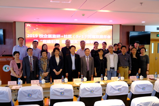5月22日上午,由永利官网医疗器械与食品学院发起的2019年校企医监研+社区(5+1)党建联盟年会暨“党建引领 医工交叉”主题学习活动在第一康复医院控江院区举行。杨浦区卫健委、杨浦区市场监管局、长白街道、杨浦区市东医院、普陀区人民医院、上海市肺科医院、上海医械股份有限公司、上海市药监局科技情报所等10余家党建联盟单位领导出席,校党委常委、组织部部长孙红,医食学院党委书记、康复工程技术研究所教师党员及学生代表,各联盟单位党办主任、支部书记、党员代表等70余人参加。永利官网党委副书记孙跃东出席会议并讲话。