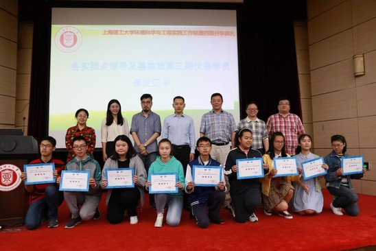 最后,参加开学典礼的各位嘉宾老师为第三期优秀学员颁发“上海市青少年科学创新实践工作站优秀学员证”。