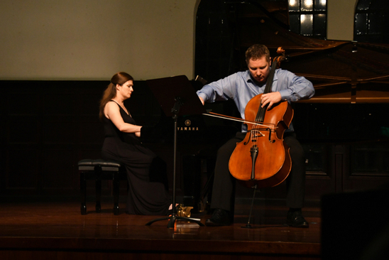 5月30号晚上七点,钢琴大提琴二重奏音乐会于永利官网音乐堂举行,两位音乐家给现场观众带来了精彩表演,演奏了Efrian Amaya、韦伯恩、Arvo Part及贝多芬的曲目。整个演奏过程分为四个部分,每一个部分都给聆听着带来了不一样的感受,侧耳倾听,大提琴声与钢琴声的交相辉映,音乐似乎是由远到近、由小到大,一阵阵轻柔婉转的“序曲”过后,是无比强烈的颤音,一个个激昂的音符敲打着听众的心叶,优雅欢快。一小时的音乐会到了尾声,观众们的掌声久久不息,向音乐家们致以感谢,感谢他们带来美妙的演奏。