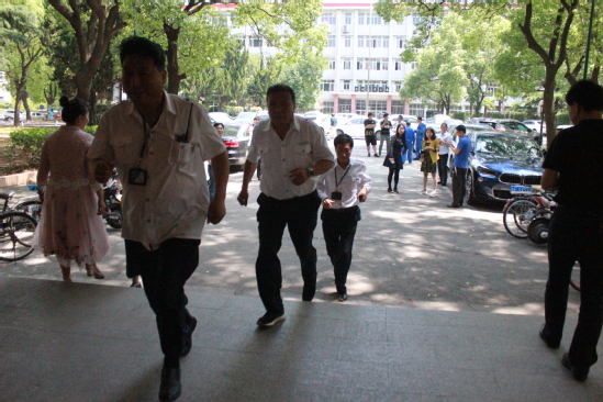 活动伊始,保卫处总指挥现场下达消防疏散演练指令,分布在马院、理学院大楼三层、一层楼道口的保卫处校卫队员立即点燃烟雾弹,模拟“火灾”发生,烟雾迅速充满了整个楼层,现场紧张的气氛开始蔓延。危险时刻,一位发现“火情”的老师第一时间拨通了保卫处24小时值班电话并同时报告学院领导。保卫处值班室接报后及时通知南校区保卫处专业救援人员赶往现场进行核实情况并进行初期灭火,通知大楼物业人员切断着火点上下两层电源,开启逃生门,通知物业公司巡逻人员增派人员,一方面引导大家有序分流疏散,逐层、逐间房间进行清场;一方面拉设警戒带,控制人员进出现场。学院接报后及时启动学院消防应急逃生应急预案,第一时间通过网上网下多渠道通知本院全体师生迅速逃生撤离。在模拟逃生现场,保卫处人员、物业公司人员、马院、理学院各部门分工合作,并尽最大努力组织师生有序逃生,各师生接到逃生指令后均捂鼻、弯腰并按照安全指示标志及时逃生到楼下安全区域,这进一步检验了大家的应急逃生能力。