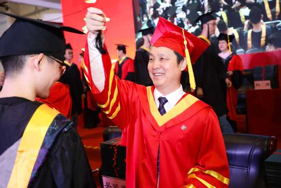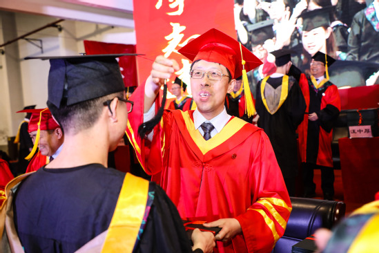 激昂的校歌响起,全体毕业生在庄严的仪式中毕业。最后,校领导和导师们用热烈的掌声欢送全体毕业生走出“毕业门”,毕业生们对这一特殊的仪式倍受感动,有的眼眶湿润,有的与校长热情拥抱,有的与导师紧紧握手……自此,毕业生们将迈向人生的新起点,踏上追梦的新征程。祝愿毕业生们不负时代使命,不负最好年华,放飞人生梦想,成就事业华章,以青春之名,追梦前行!