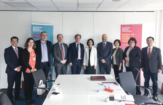 最后,代表团访问了谢菲尔德哈勒姆大学,该校科研副校长Roger Eccleston教授、创新与创业副校长兼商学院院长Kevin Kerrigan教授、候任国际交流副校长兼社会科学与人文学院院长Chris Wigginton教授和全球发展与合作主任James Richardson先生热情接待了代表团。双方就合作办学项目、学生交流、师资互访、科研合作等多方面展开了深入讨论。会后,永利官网代表团参观了商学院和艺术学院。两校于2016年在中英国际学院共同开设了“工商管理”中外合作办学专业,2017年正式招生。