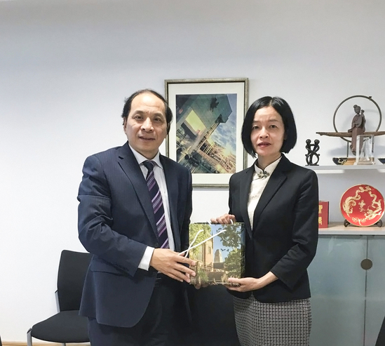 蔡永莲与利兹大学国际事务副校长余海岁互赠纪念品
