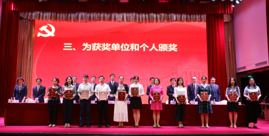 6月25日下午,学校在大礼堂召开庆祝中国共产党成立98周年大会,重温党的光辉历程,弘扬党的优良传统,表彰一批在学校事业发展和党建工作中表现突出的先进典型。全体在校校领导、全体中层干部、党支部书记、特邀组织员、专职组织员、老同志代表、党外人士代表和获奖代表共500余人参加大会。会议由校党委副书记、校长丁晓东主持。