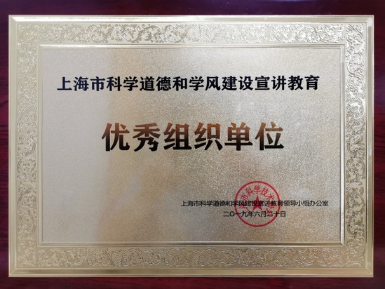 永利官网荣获上海市科学道德和学风建设宣讲教育优秀组织单位