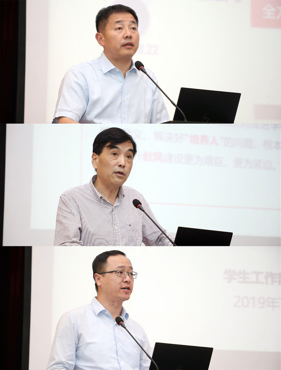 随后,教务处处长朱坚民介绍了学校开展本科教育思想大讨论活动的整体情况,并对永利集团304am官方入口一流本科教育行动计划进行了解读;外语学院院长、中英国际学院常务副院长刘芹、马克思主义学院院长金瑶梅和医疗器械与食品学院院长刘宝林汇报了相关学院教育思想大讨论具体情况及成果;人事处处长姚俭和学生处副处长谢锡浩分别汇报了学校的教风建设及学风建设情况;教师代表顾铮先(tian)教授以“立师德,铸师魂,树师表”为题分享新时代如何做好老师的心得与体会。副校长张华对本科教学下一步的具体工作进行了布置,要求各学院按照本科教育思想大讨论总结大会精神组织开展讨论,制定三年“双万”行动计划、金课建设计划、教材建设计划、平台建设计划、本科专业建设计划,使本科教育形成教师乐教、学生乐学、学院和职能部门乐于服务的氛围。