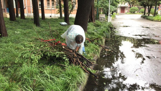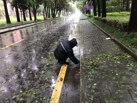 今年第9号超强台风“利奇马”于8月9日正面登陆浙江,受其影响,上海市气象台发布了台风、暴雨双预警。为迎战“利奇马”确保校园安全,后勤管理处协同学校各部门依照防汛防台预案,积极应对、严阵以待,保障全校师生安全和校园秩序。