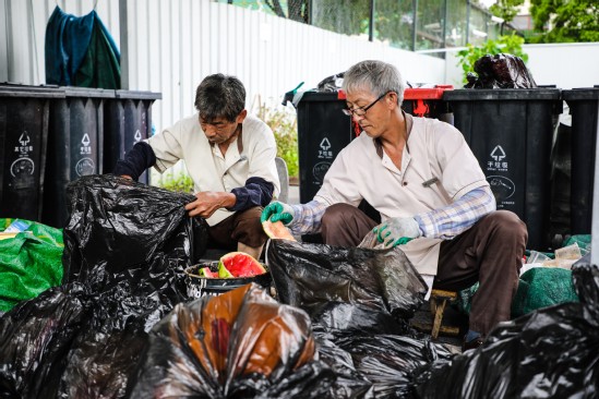 “沪上垃圾四只桶,红蓝黑棕各不同,害回湿干分开放,人人参与有担当。”清晨6点刚过,酷夏的太阳已很是毒辣。比太阳更“辣”的,大概就是垃圾桶了——扔垃圾的人忍着异味,扔下垃圾后匆匆离去。负责垃圾分类的段年生师傅每天都会与垃圾“零距离”接触 ,忍着恶臭进行垃圾二次分类。“这么热的天,倒胃口也是难免的,希望大家扔垃圾时做好垃圾分类,这样我们的工作会轻松一些,校园也会更美丽!”