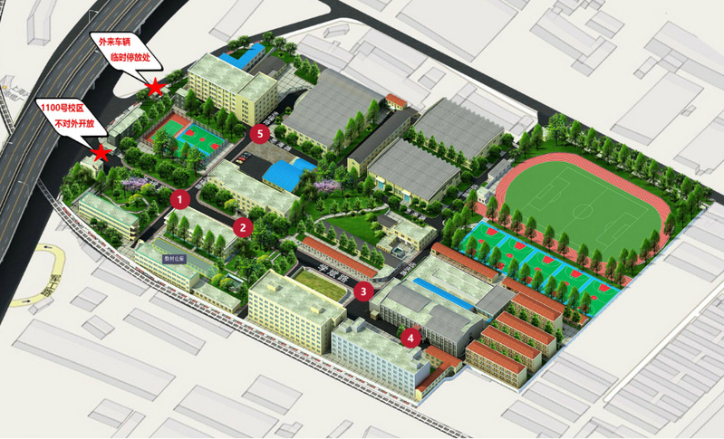 (二)军工路1100号校区。1.各类车辆停放:校区停车场仅对校内车辆开放,迎新车辆(短驳车)统一停放在校区内第四食堂门前广场,接送学生车辆请停放在校区旁的上海机床厂有限公司内;2.校内禁停区域:军工路1100号校区所有道路禁止停车。
