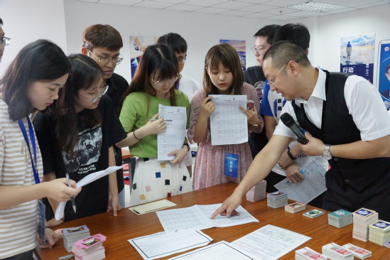 创业指导专家志愿团李尚衡为学员带来了精彩的商业模拟——沙盘演练环节,学员们自由组合成沙漠生存团队,通过模拟25天在沙漠中的生存,考验学员们的活动计划能力、临场应变能力、商业模拟生存能力,通过沙盘演练过程激发了学员们的创业激情,形成良好、默契的团队配合,学员们的创新意识、创业能力得到进一步的提升。