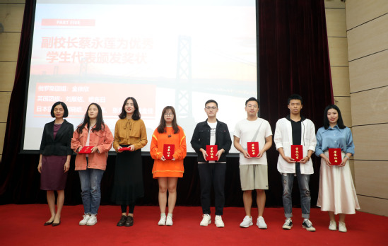 报告会的第二部分,副校长蔡永莲对交流团组中表现优异的学生进行了表彰,为他们颁发了“中华优秀传统文化传播大使”证书,充分肯定他们在海外访学过程中积极弘扬中华优秀传统文化的爱国意识和高度的责任感。校党委副书记、副校长盛春作了总结讲话,他指出,国际交流处、校团委、学生工作部紧密联合,共同推进了高水平大学建设,为学生搭建了开阔国际视野的平台,助力学生成长成才。寄语青年大学生刻苦学习,全面发展,积极参加各类国际交流项目,传播中华优秀传统文化。