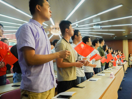 最后,活动在师生合唱《我和我的祖国》中落下帷幕。摇曳的五星红旗、嘹亮的歌声、兴奋的笑脸、触动的感情为本次活动画上了圆满的句号。正如研究生团委书记李晓庆所言:“中国历史上下五千年,当下中国正处在一个前所未有的新时代。在这样一个历史方位,生而逢时是青年人的幸运,我们决不能辜负这样伟大的时代。”