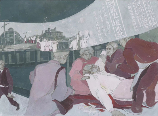 版艺学生创作的版画作品《沪江往事——刘湛恩传》