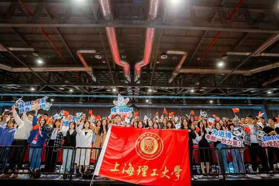大会首发了由廖昌永,胡歌,黄豆豆,吴敏霞,朱正廷,黄龄,张军,邹市明,平安,吴睿睿等进博会青年志愿者宣传推广大使全新演绎的上海青年志愿者主题歌《年轻的力量》,充分展现了志愿者青春似火、青年担当,敬业奉献、奋进新时代的精神面貌。全体进博会志愿者庄严宣誓:“向前进,搏青春!”,上理小叶子们拳头紧握,声音铿锵有力,眼睛坚定有神,给人以昂扬的斗志和力量。最后,在少先队员的带领下,全体志愿者齐声唱响《歌唱祖国》,五星红旗随风飘扬,上理的旗帜和全场数十面校旗一齐舞动,全场气氛到达顶峰,每个小叶子都心潮澎湃,不断舞动自己手中的旗帜,以表达自己的热忱与激情。