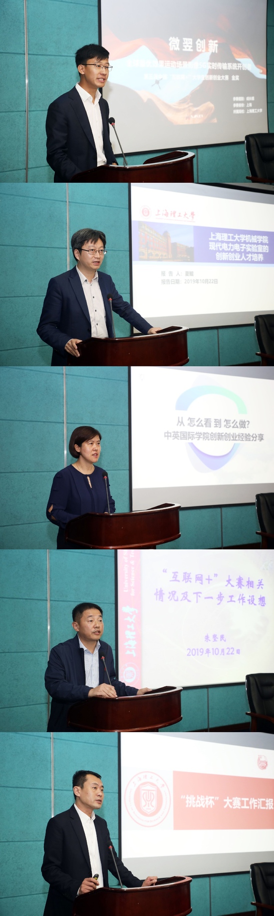 首先,2019年 “互联网+”大赛金奖获奖团队代表李涵同学作项目展示与感想分享,大赛指导老师、创新创业学院副院长夏鲲交流经验体会;中英国际学院常务副院长刘芹汇报学院创新创业工作。随后,教务处处长朱坚民、团委书记曲德强分别就“互联网+”大赛以及“挑战杯”大赛相关情况及下一步工作设想进行了专题报告。与会人员就创新创业工作的实践体会、经验做法、政策建议等展开热烈讨论。