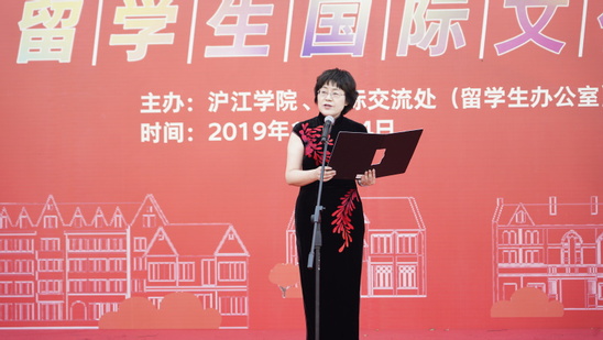 副校长蔡永莲,校党委常委、宣传部部长叶磊,沪江学院常务副院长、直属党支部书记陈红,国际交流处处长马晓婷,以及相关职能部处、学院负责人参加了开幕式。蔡永莲在开幕致辞中讲到,本次文化节展现了新中国成立以来,中国与各国人民建立起的友谊、互信与相互尊重,为国际学生能够更好地体验中华优秀传统文化的瑰宝,更深入地知华、友华,为多国文化交流互鉴搭建了很好的平台,她希望中外学生在学习专业知识的同时,以更加开放包容的态度,主动融入文明交流互鉴更加频繁密切的新时代,实现更好的自己。