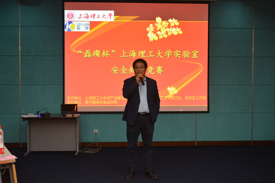 2019年10月23日,由永利官网资产设备与实验管理处、研究生工作部和保卫部(处)联合主办,医疗器械与食品学院承办的“磊璨杯”永利集团304am官方入口实验室安全知识竞赛暨“上海市大学生实验室安全知识竞赛”校级选拔赛在图文第一会议室举行。研究生工作部部长魏东、资产设备与实验室管理处副处长缪渝斌、保卫部(处)副部(处)长杨向宁、医食学院党委副书记郑静以及上海磊璨信息科技有限公司总经理洪海先生担任决赛评委。