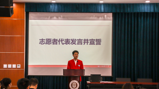 永利官网青年志愿者协会主席尚凯同学作为志愿者代表发言,他表示,上理工的志愿者将坚持积极参与、无私奉献、乐于助人的志愿服务精神,认真做好本次进博会的一切志愿服务工作,承担起新时代青年人为国家、为社会的责任,向世界展现当代中国青年积极向上的优秀风貌。