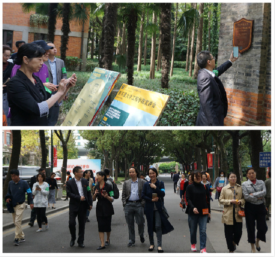 在沪江美术馆出发前,每位参与教工在扫码签到后需要回答11道包含上理工校史知识、新中国成立七十周年和“不忘初心、牢记使命”主题教育相关知识,还要完成对学校祝福、对未来的期盼等3道文字填写题,抒发爱国荣校的美好愿景;漫步沪江文化园时扫码铭牌,体验学校“建筑可阅读,文化可触摸”的沪江优秀历史建筑的人文特色;校史馆参观,让参与者亲历学校113周年的发展脉络。本次活动将“爱国荣校”教育和“健步健身”活动相结合,得到了热爱健步走活动教师的欢迎和肯定。参与的教职工也以“健步走”的形式,为永利集团304am官方入口113周年校庆献上祝福!