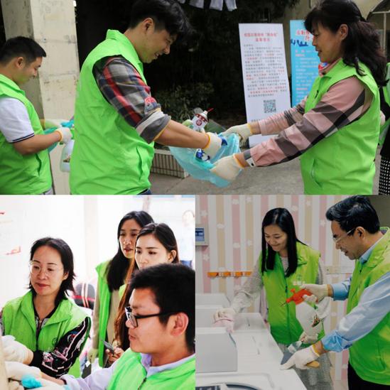 为畅通师生交流平台,学院在宿区党建工作站设立“心语盒”,发挥教工党员为广大同学服务的先锋模范作用,由他们定期收集学生的意见建议,倾听学生心声,及时关注学生、反馈问题、解决诉求。同时,全体教工党员身着志愿者服装,携带铲子、垃圾袋、喷壶等工具,到各宿舍区集中开展环境卫生综合整治工作。活动组织有序、分工明确,先后捡拾楼前屋后的纸片、烟蒂,清理小广告,不怕脏、不怕累、不叫苦,随处可见热火朝天的劳动场面。党员志愿服务等一系列活动的开展,既为文明校园建设创造了整洁、优美的环境,也进一步增强了基层党组织的凝聚力和战斗力,推动了主题教育的深入开展,做到了“学”中筑牢根基,“做”中彰显本色。