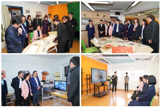 调研伊始,刘锦一行参观了学院学习资源中心和创新创业中心。丁晓东介绍了学校办学历史沿革、办学特色、学科发展、国际合作交流以及国际化办学的探索和成果等情况。随后,刘锦一行分别走进“Starry Ink星墨”工作坊、“Actor易创”工作坊以及“RoboVigor”机器人实验室进行交流体验,学生们流利的全英文汇报和精彩的机器人展示给刘锦一行留下深刻印象。随后,获得第五届中国“互联网+”大学生创新创业大赛银奖和获得第十二届全国大学生创新创业年会“我最喜爱的项目”奖的学生代表进行了现场展示汇报,刘锦一行对中英学子在创新创业比赛中取得的成绩给予了高度肯定。