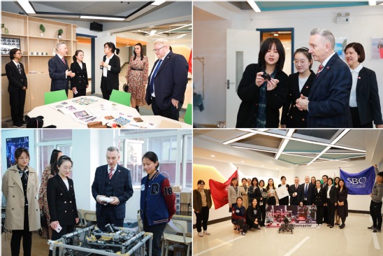 Gary Millar一行在常务副院长刘芹等人的陪同下参观了中英国际学院创新创业中心和学习资源中心,Gary Millar一行分别走进“Starry Ink星墨”工作坊、“Actor易创”工作坊、“RoboVigor”机器人实验室进行交流体验,学生们为其赠送工作坊的纪念品,Gary Millar副市长还参观了刚成立的中英国际学院“1195號”校友之家。最后,Gary Millar一行在与师生们亲切交流与合影留念中结束了此次访问。