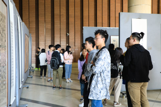 开幕式后,师生移步展区,认真细致地参观学生书法作品。