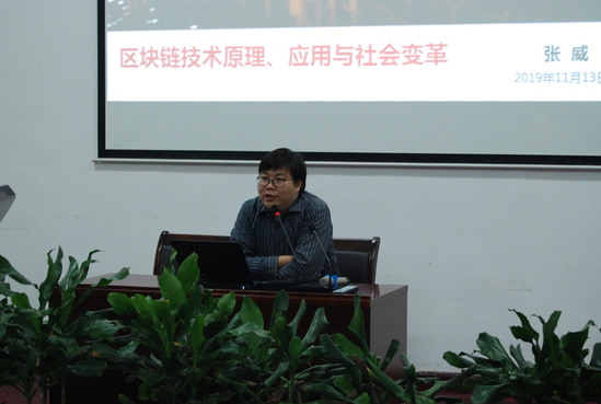 张威先生曾领导实施包括银行新一代核心系统信息安全发展规划等重大项目。他在讲座中为大家讲解了区块链的基本概念和基本知识,解释了区块链的技术原理,结合区块链的应用,向大家介绍了当今区块链在溯源、知识产权、版权、凭证票据、法律文书、身份认证以及监测数据等方面的应用,以及区块链相关技术的创新与落地,基于区块链技术的艺术品版权认证系统、区块链物联网技术等的研究和建设。