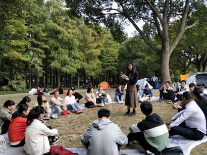 11月17日,图书馆在共青森林公园开展了一场以“我最爱的一首歌词”为主题的户外阅读分享会,活动吸引了来自各学院20余名师生的踊跃参与。