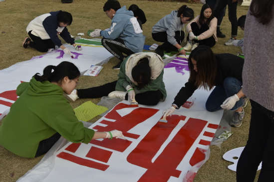 上午9时,同学们统一乘坐大巴来到素拓场地。带队教练将成员随机分成六组,进行了热身运动,并宣布活动正式开始。活动伊始,各队伍充分发挥想象力,设计了独有的队名和口号,并积极上台展示,彰显了学生干部的青春活力和多才多艺。随后在教练的指导下,各组成员斗志昂扬、团结一心投入到激烈的比赛中。在“挑战不可能”环节,队员们通过接力赛形式完成六个任务“通关”,磨练了大家团队协作的凝聚力;在“驿站传书”环节,使同学们认识到学会沟通的重要性,增强了彼此间有效沟通的能力;在“诺曼底登陆”环节,锻炼了大家的协调作战能力。活动最后,在“共绘蓝图”环节,100名研究生骨干通力合作,共同手绘完成了一幅长12米、宽5.5米的“青春耀上理·勇做追梦人”纳斯卡巨画。