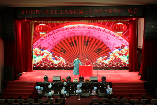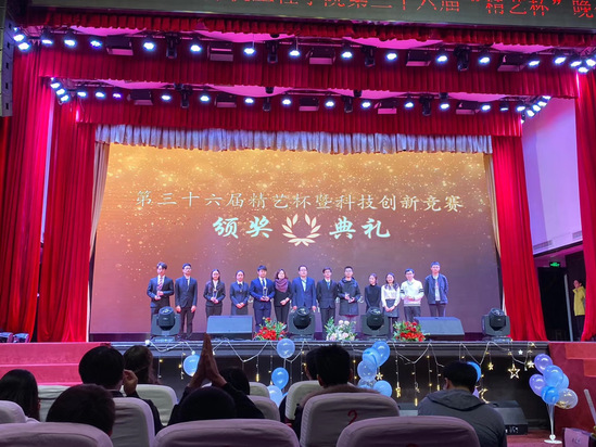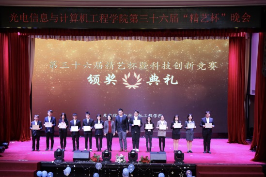 2019年11月25日晚,光电信息与计算机工程学院第36届“精艺杯”晚会暨科技创新竞赛颁奖典礼在学校大礼堂如期拉开帷幕。上海明佳昕仁电子科技有限公司总经理孙良,深圳新能力有限科技公司总经理张成,光电学院党委书记陈海瑾,光电学院常务副院长张学典,光电学院党委副书记曹英,以及各学院师生出席了本次盛典。