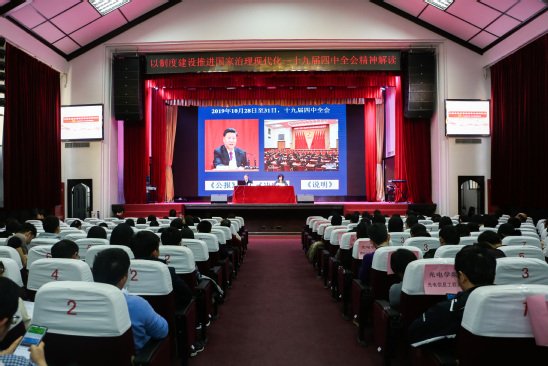 11月份,学校集中开展了5场十九届四中全会精神校内宣讲活动。12月以来,学校又陆续开展了多场校内宣讲活动。12月9日,党委书记吴坚勇为马院师生宣讲,市委党校罗峰教授为管理学院、光电学院师生党员以及学校学生党支部书记宣讲。12月10日,离退休党委宣讲组组长何建中为离退休党支部书记、特邀党建组织员宣讲。参加宣讲活动的师生一致认为,学校组织的集中宣讲对于我们全面、准确、深刻把握全会精神实质和各项要求,并把全会精神落实到学校各项工作当中具有重要指导作用。
