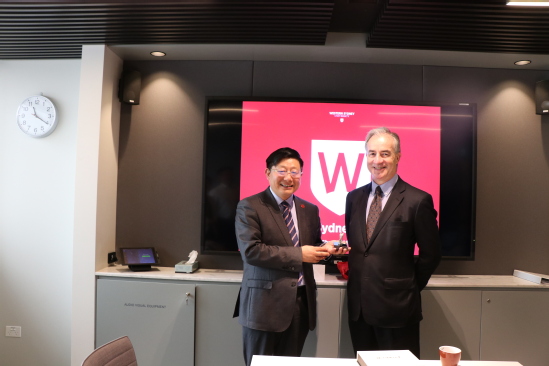 与澳大利亚西悉尼大学教务长互赠纪念品