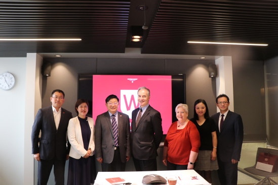 在澳大利亚,代表团首先访问了埃迪斯·科文大学,与该校校长Steve Chapman、副校长王嵬等进行了亲切地会谈,并签署了两校科研合作协议备忘录。随后分别与研究生院、人文与艺术学院代表进行了洽谈,双方就两校科研合作具体实施形式和方案进行了沟通,并提出在国家留基委项目申请、澳大利亚文学文化研究、博士生培养方面可以开展更加紧密的合作。代表团还参观了该校播音实践教学中心、艺术设计中心以及其他教学设施,并会见了在该校就读联合培养博士师资项目的外语学院孙海影老师和已获得该校教育学博士学位的外语学院2010级研究生金惠芬。永利官网与澳大利亚埃迪斯·科文大学有着20余年的合作历史,曾合作举办五届澳大利亚文化周活动,并于今年上半年签署了联合培养博士师资协议。
