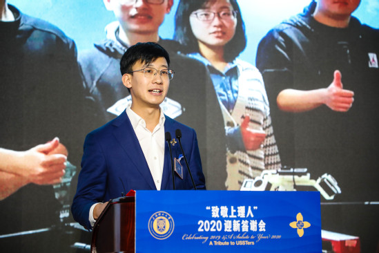 2019年内蒙古自治区科技进步一等奖获得者、医疗器械与食品学院管骁教授和第五届中国“互联网+”大学生创新创业大赛金奖获得者、机械工程学院李涵同学分别作为师生代表致以新年感言,回顾了各自在求学阶段、创新研究与服务社会中的付出、努力与收获,彰显了上理人积极向上、敢于拼搏的精神品质,表达了自己和所有上理人对学校的深情谢意和对未来的美好期待。