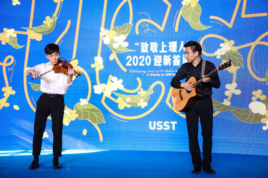伴随着沪江之声教工合唱团深情悠扬的歌声和师生携手演奏的弦乐,迎新答谢会正式拉开帷幕。主题视频《致敬追梦人》通过一幕幕上理印记和一件件丰收成果,集中展现了上理人初心如磐、使命在肩的责任担当,描绘了上理人坚韧不拔、追求卓越的精神底色。