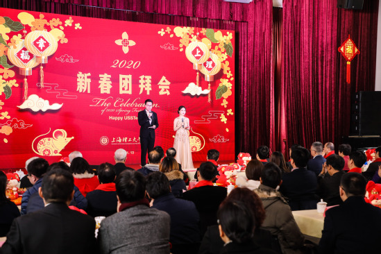 金猪辞旧,瑞鼠迎春。1月13日上午,“幸福上理”2020新春团拜会在学校小礼堂举行。全体校领导和庄松林院士、顾敏院士,杨浦区、长白街道、定海街道领导,一校八院(所)、普陀区教育局、黄浦区储能中学等合作单位领导,上海出版印刷高等专科学校、上理附属市东医院、附属中学、附属初中、附属小学、附属实验学校、附属幼稚园等大学系统单位领导,学校历任党政领导、曾在学校工作的领导、离退休老同志,市(区)人大代表、政协委员、各民主党派、统战团体负责人,校办企业相关单位负责人、学校各部门(学院)负责人和师生代表等150余人欢聚一堂,共迎新春。