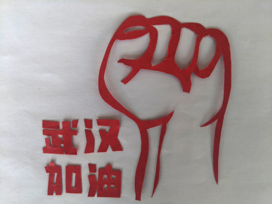 作者出生于非物质文化遗产——“卢龙剪纸”世家。在老家过年的他缺少创作原材料,但他依然拿起手边的工具,创作了剪纸作品“为武汉加油”。