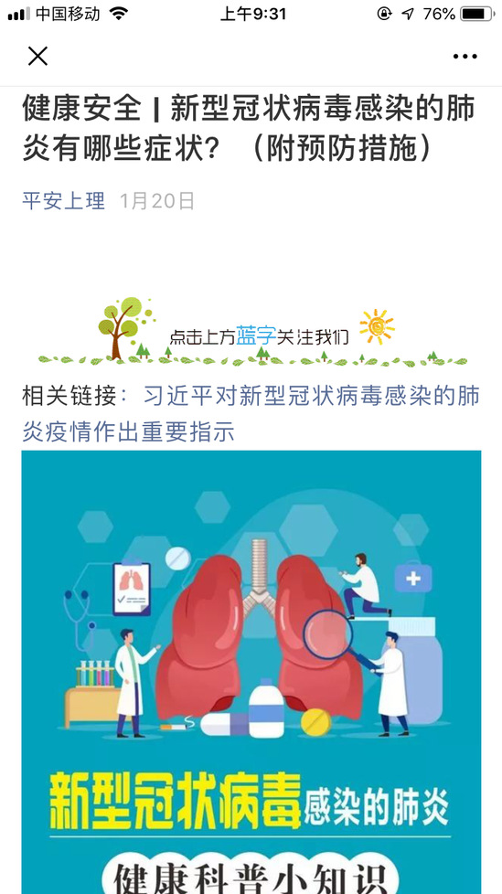 细化举措,实行最严管控。为切实掐断校外疫情传染源向校内蔓延,保卫处紧紧围绕校门防控主要任务,不断加强网络宣传、门口阻截、校内巡守、技术防控,安全保障“6项”重点工作,1月20日,保卫处通过平安上理微信第一时间进行防控预警,连日来发布疫情防控知识22篇,总阅读量16000人以上。