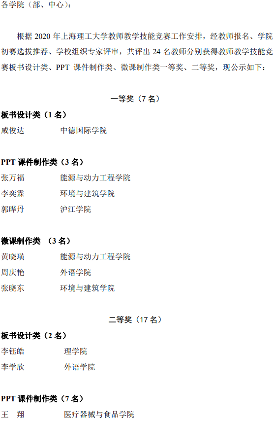 2020年永利集团304am官方入口教师教学技能竞赛获奖教师名单公示